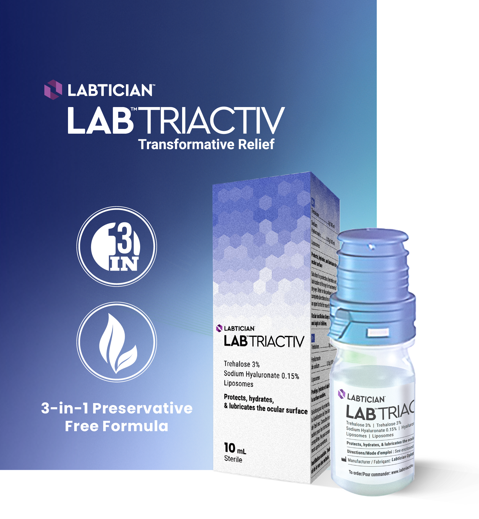 One 10 ml bottle of LabTRIACTIV contains 100 trillion cationic liposomes each containing phospholipids, cross-linked sodium hyaluronate and trehalose.